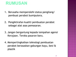 Merupakan Badan Pensijilan Perabot yang pertama di Malaysia Telah diiktiraf oleh Kementerian Kewangan sebagai Agensi Pengawalselia kualiti perabot perolehan kerajaan. 12 Penggunaan dan Pengeluaran Mampan. Jadual kadar harga membekal menghantar dan memasang.